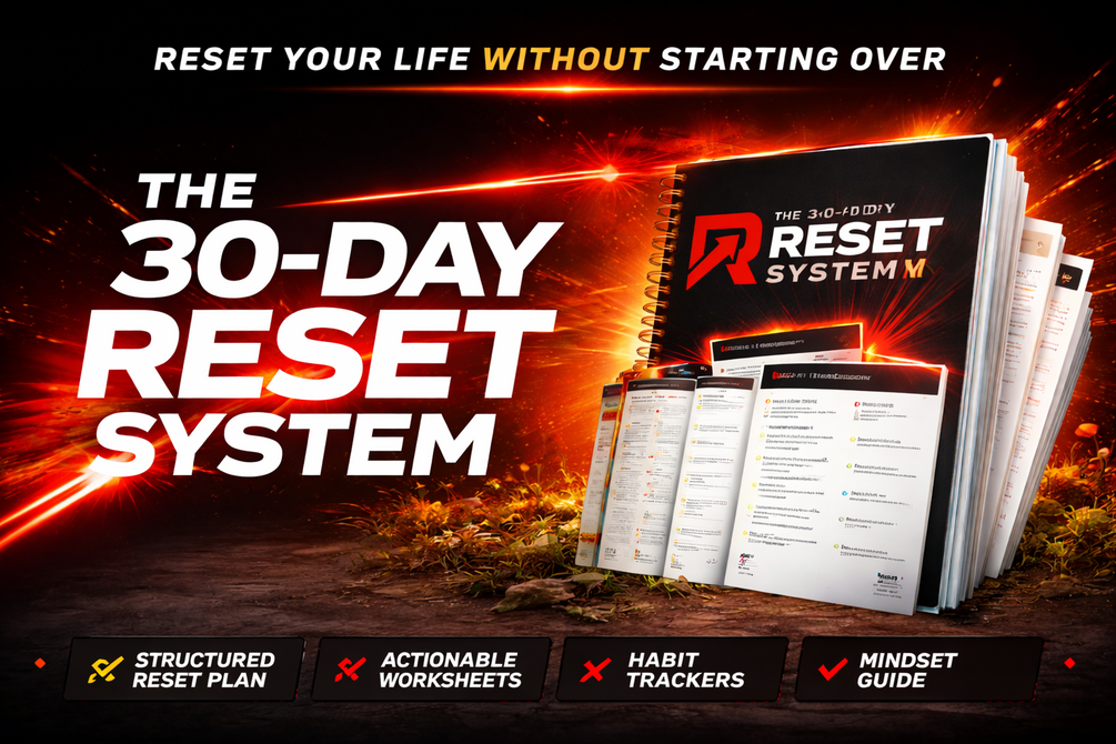 The 30-Day Reset System is a bold, structured framework designed to help ambitious people rebuild focus, regain control, and create real momentum again.